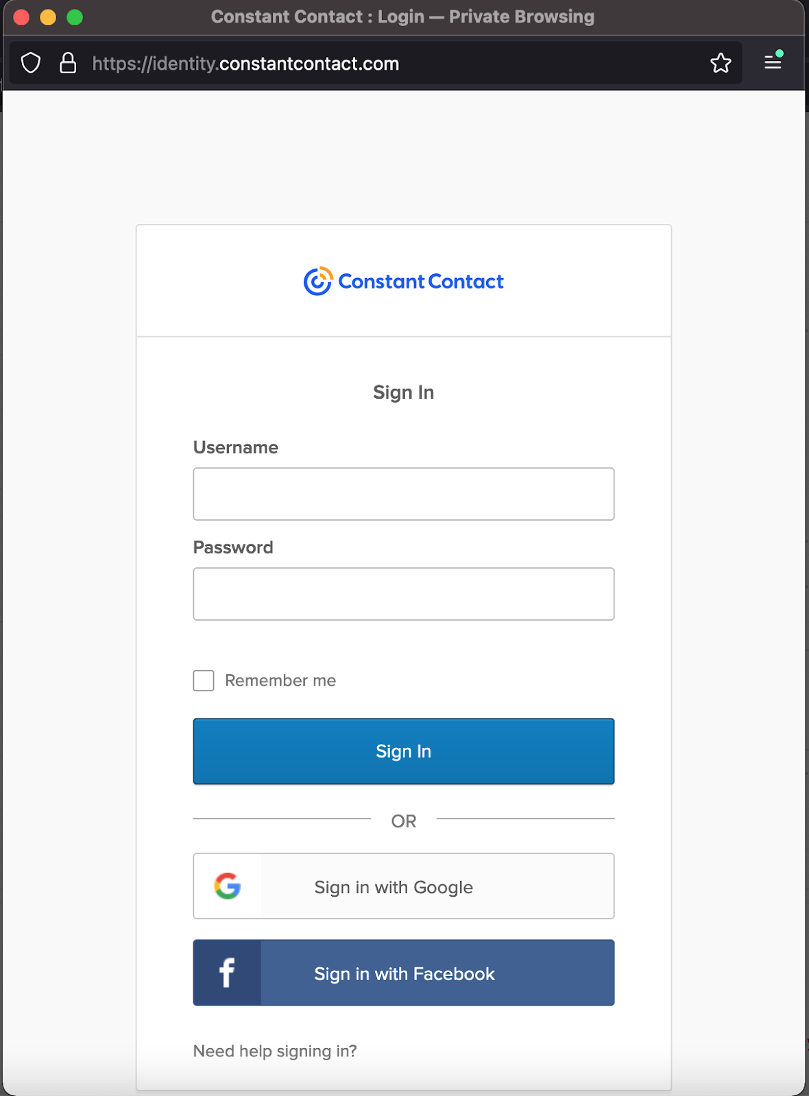 Then after clicking the “Connect” button, you need to login in to Constant Contact by entering your username and password and click on “Sign In” button as shown below,