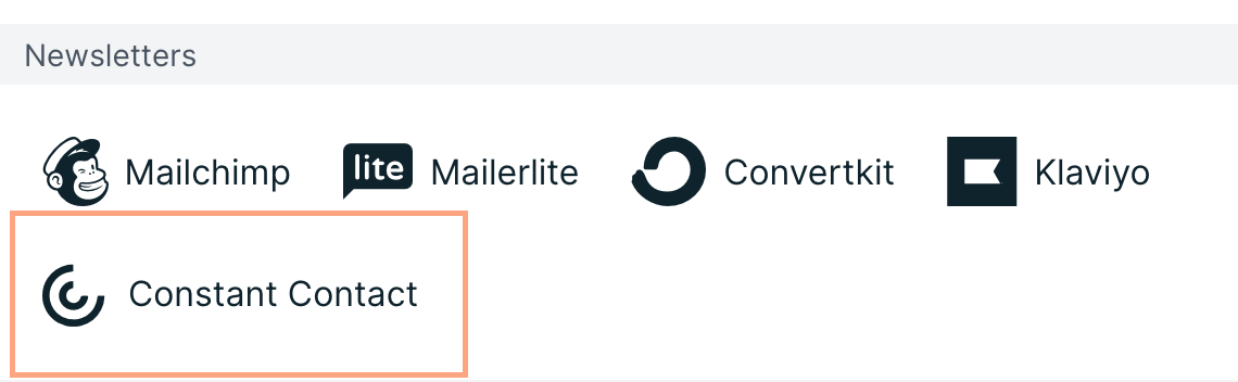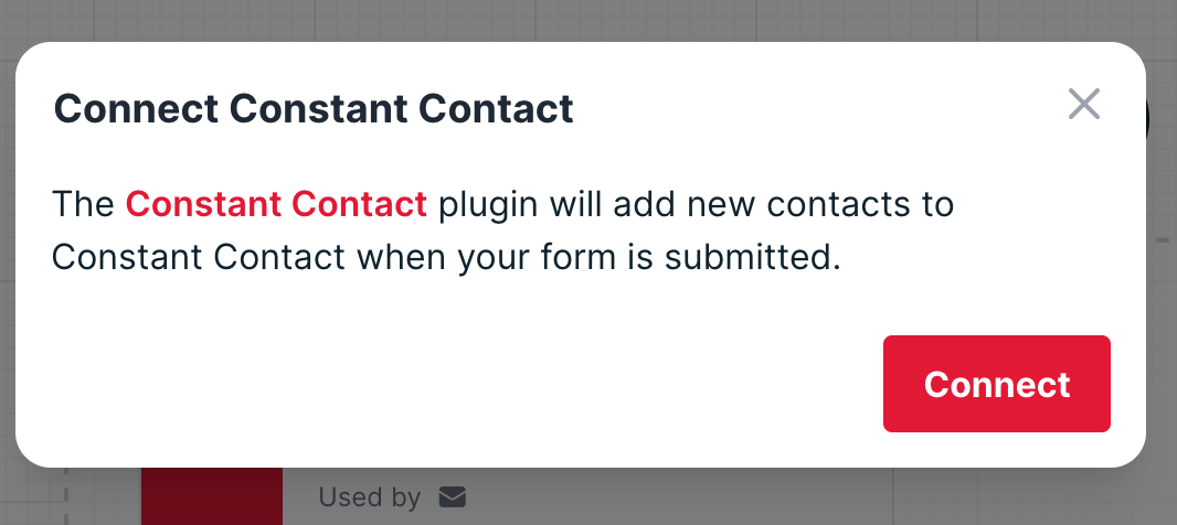 Once you’ve created and configured a form that, at a minimum, has an input named email_address you can connect to Constant Contact using the Constant Contact Plugin. To do so, first, go to the Plugins tab of your form. Then click the Constant Contact button as show below,